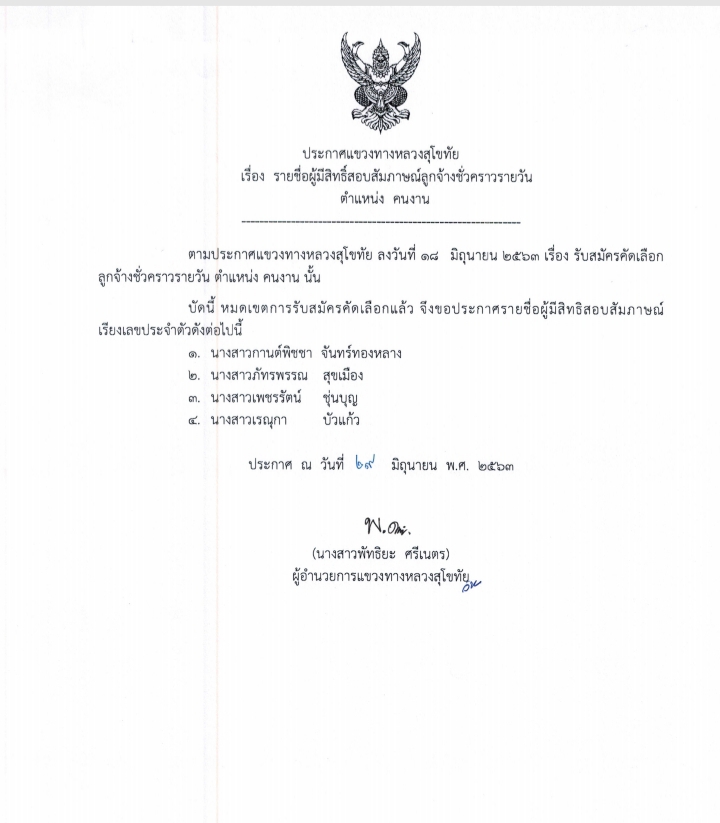 ประกาศรายชื่อและวันสอบสัมภาษณ์