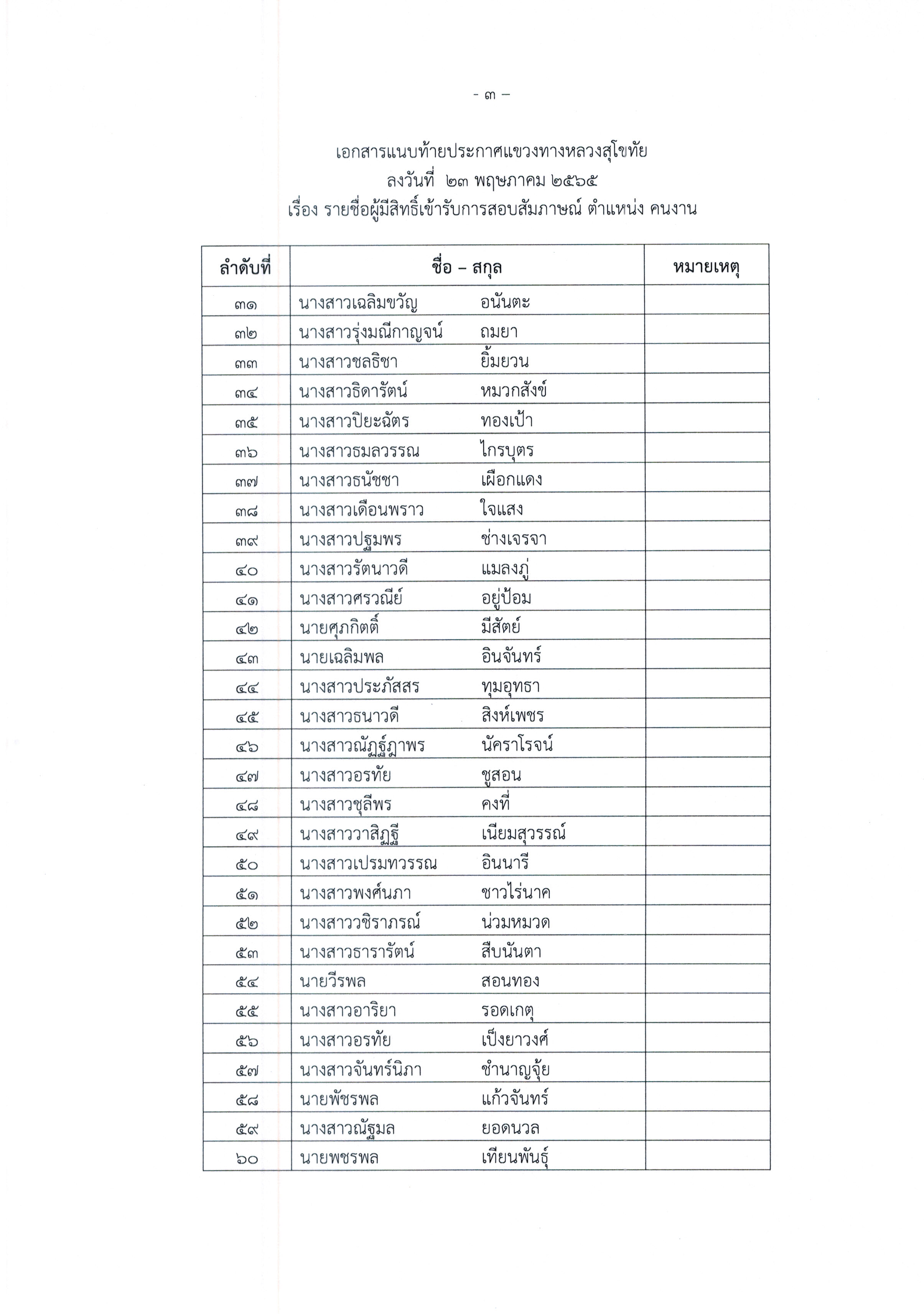 ประกาศรายชื่อผู้มีสิทธิ์เข้ารับการสอบสัมภาษณ์ พร้อมกำหนดวัน เวลา และสถานที่สอบสัมภาษณ์ลูกจ้างชั่วคราวรายวัน ตำแหน่ง คนงาน