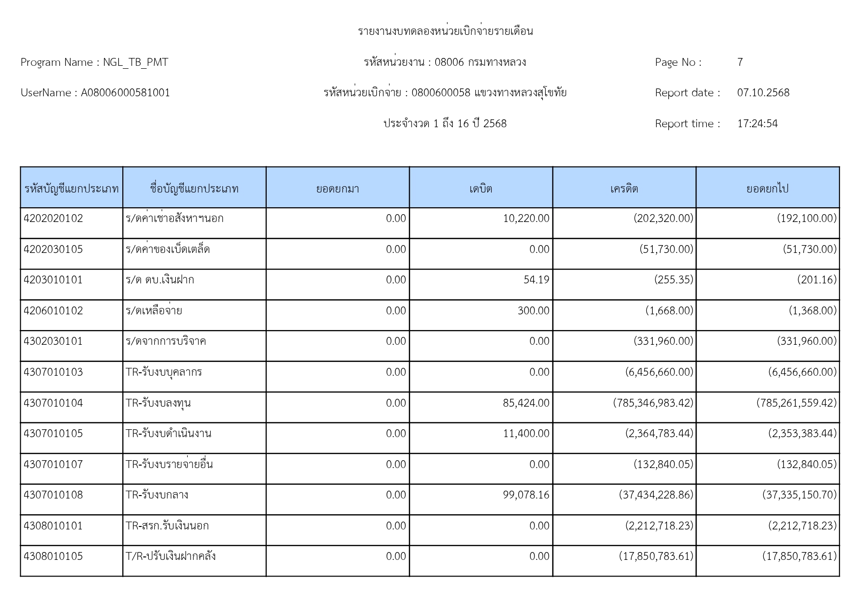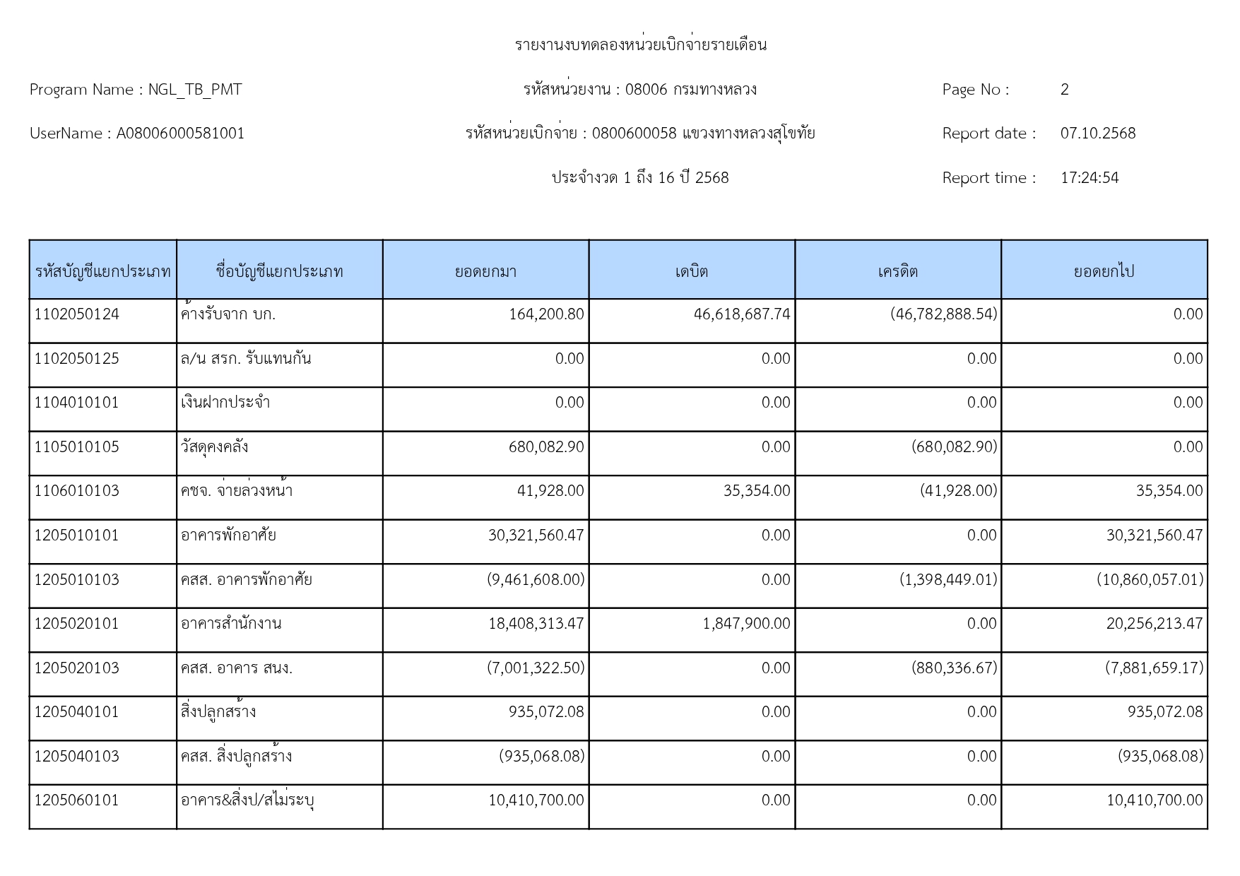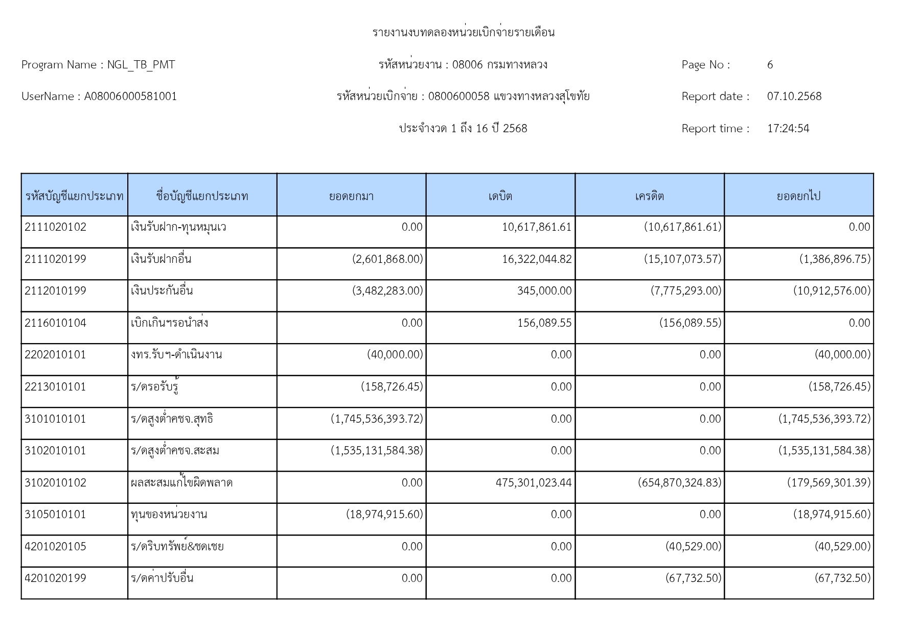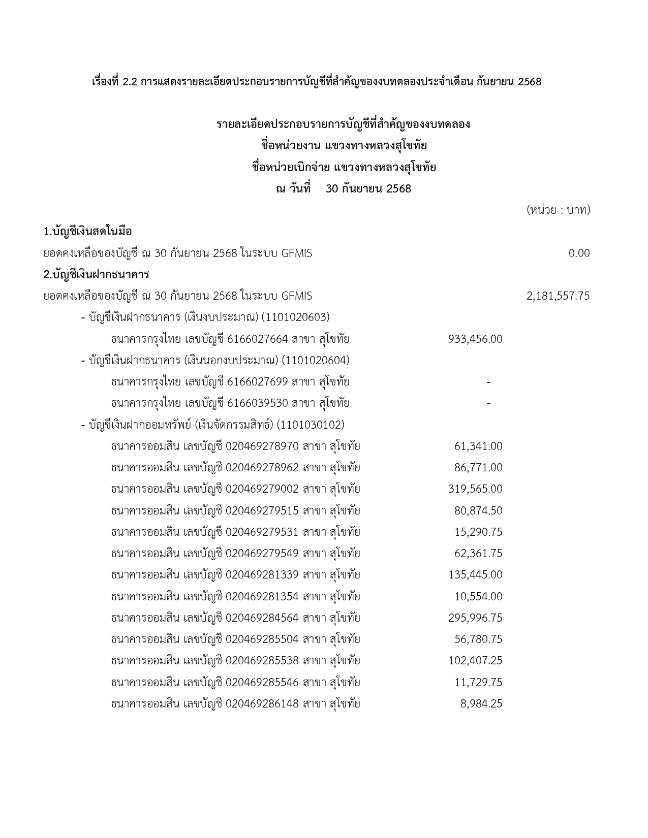 ข้อมูลข่าว : รายละเอียดประกอบรายการบัญชีที่สำคัญของงบทดลอง แขวงทางหลวงสุโขทัย ณ วันที่ 30 กันยายน 2568