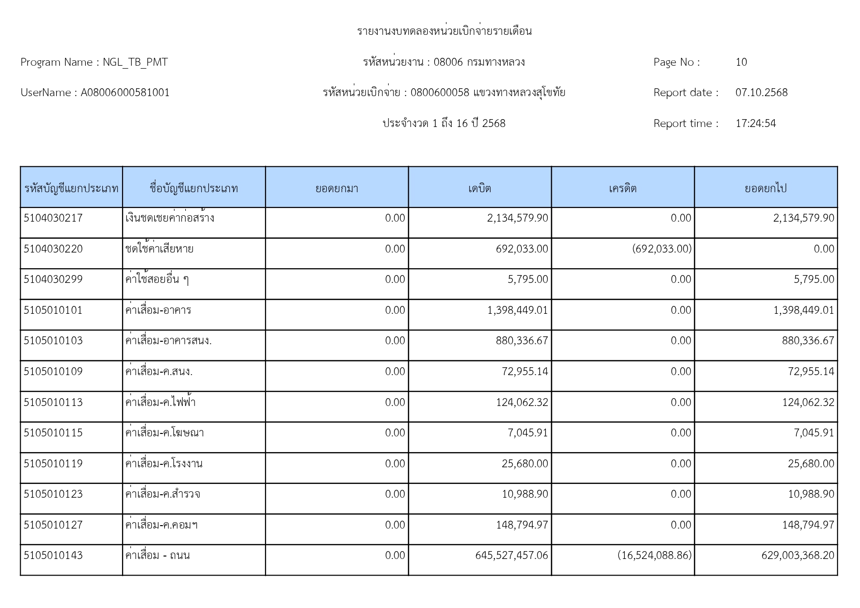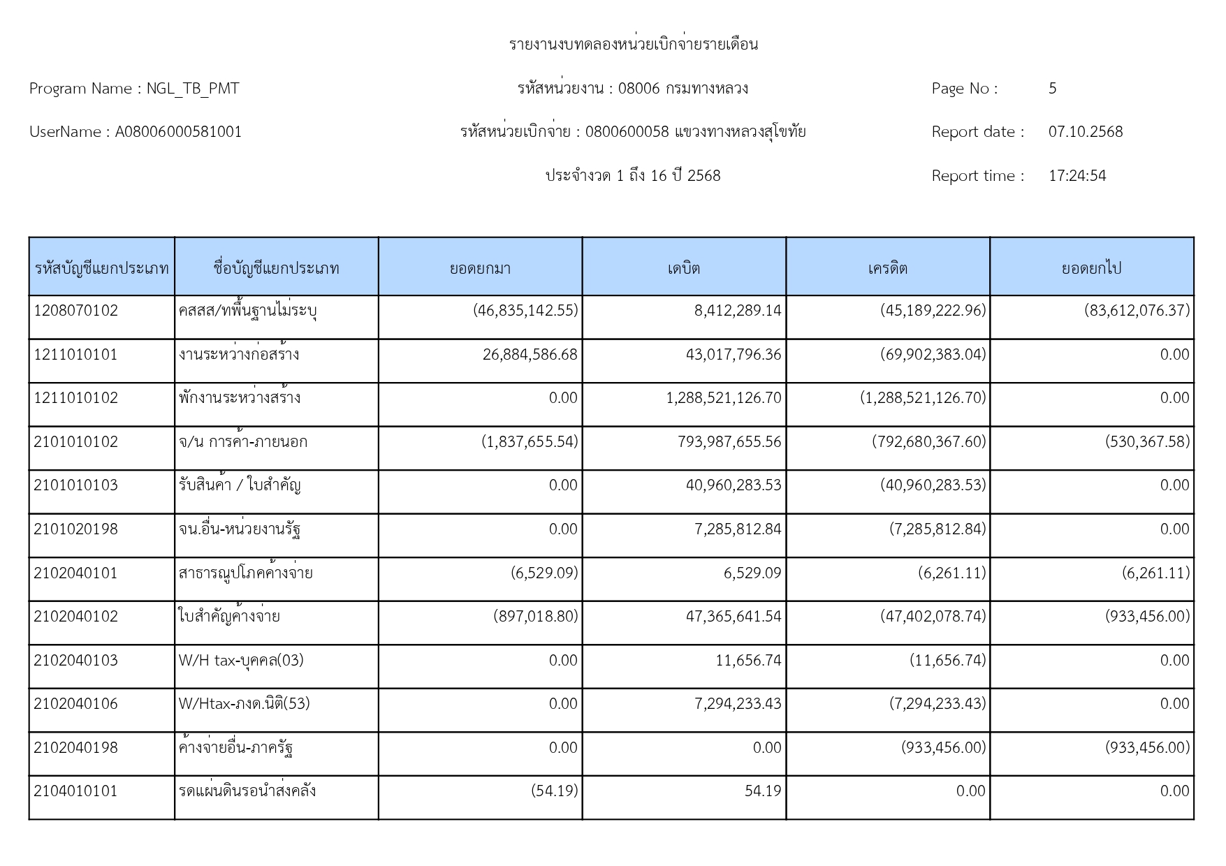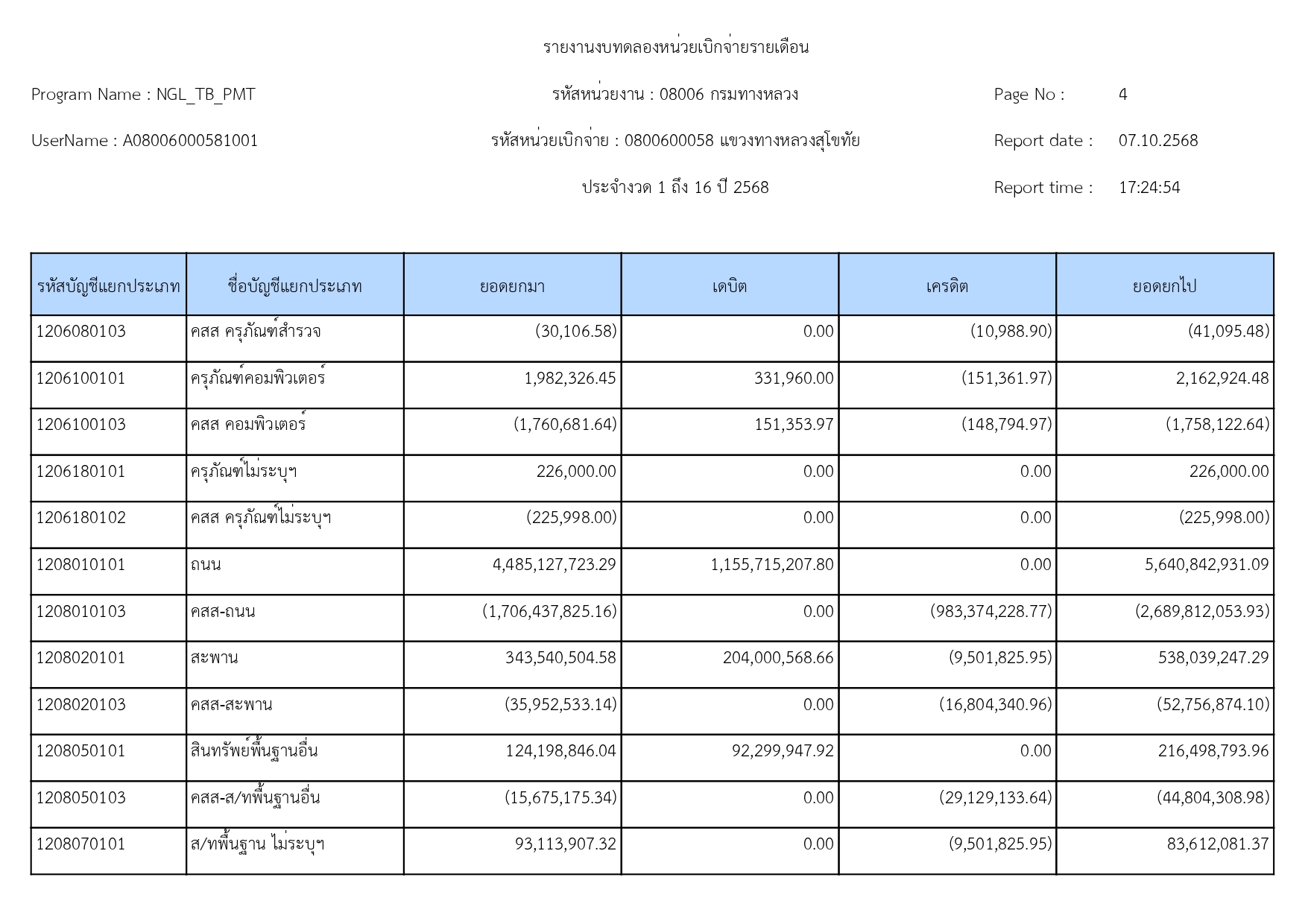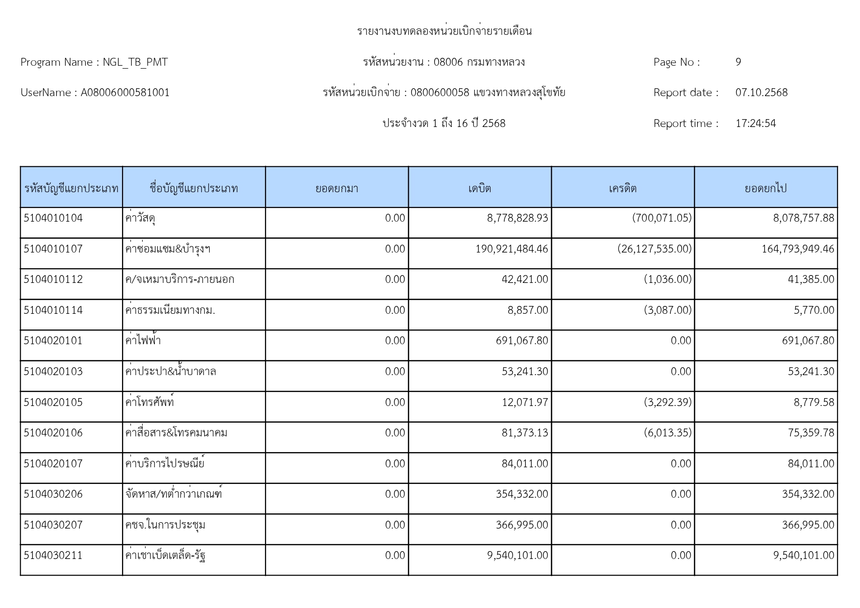 ข้อมูลข่าว : รายละเอียดประกอบรายการบัญชีที่สำคัญของงบทดลอง แขวงทางหลวงสุโขทัย ณ วันที่ 30 กันยายน 2568