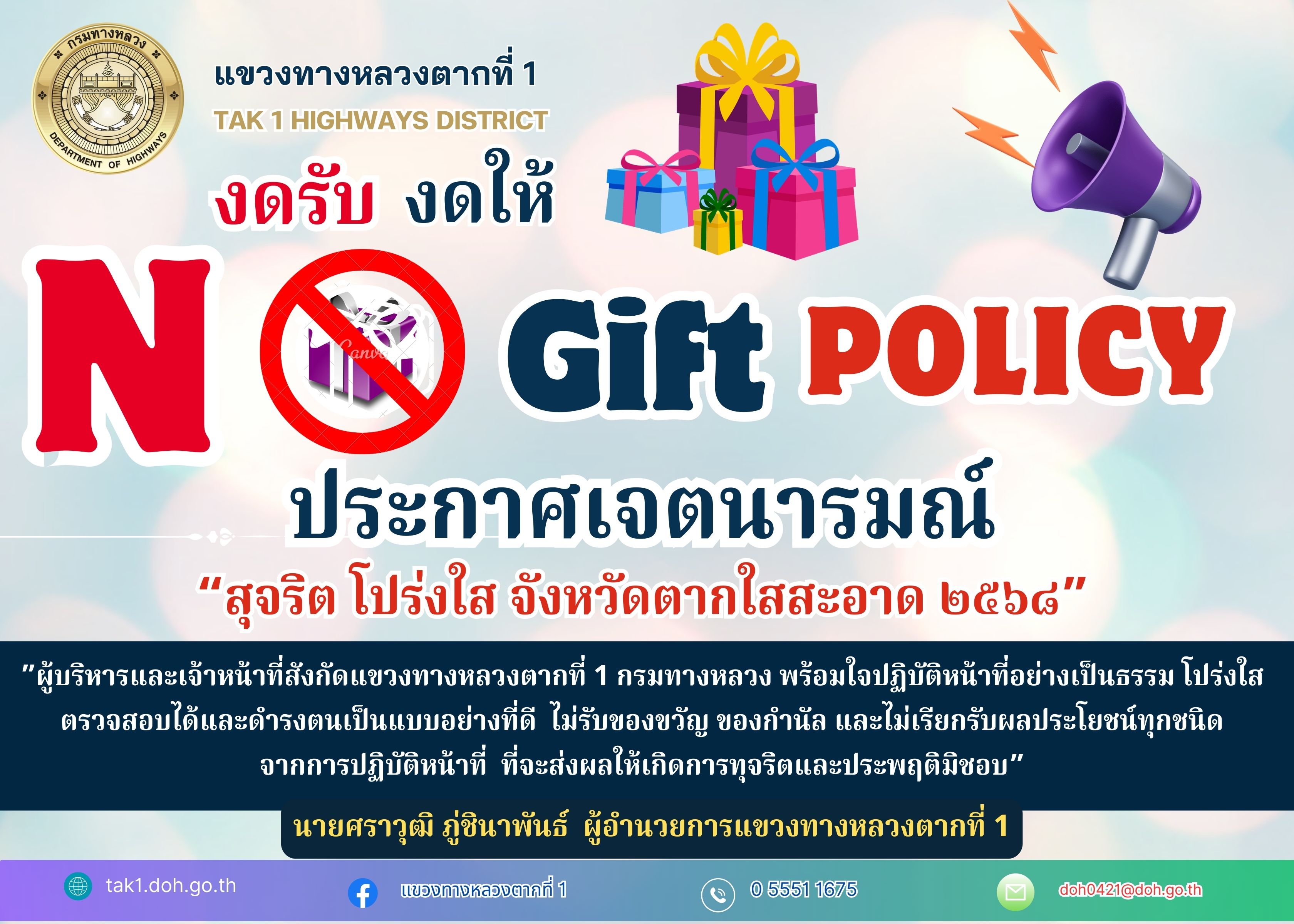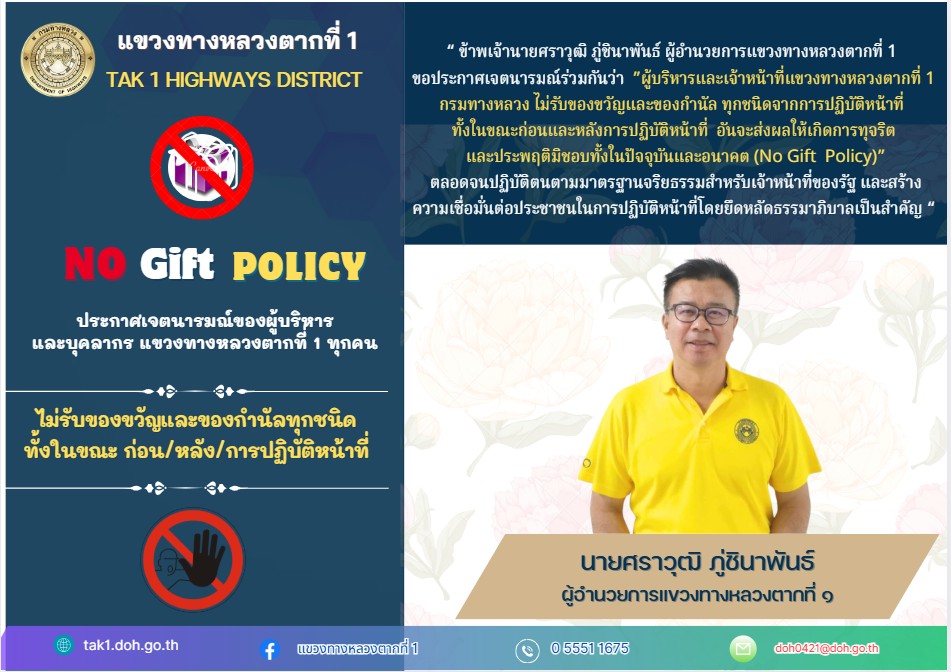 วิสัยทัศน์ : บำรุงรักษาเป็นเยี่ยม ความปลอดภัยบนถนนเป็นเลิศ เชิดชูเศรษฐกิจ การท่องเที่ยวเมืองตากให้ก้าวไกล