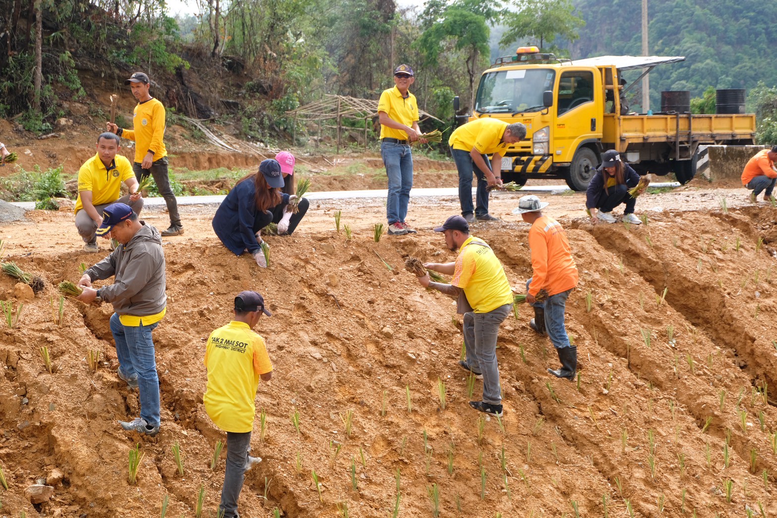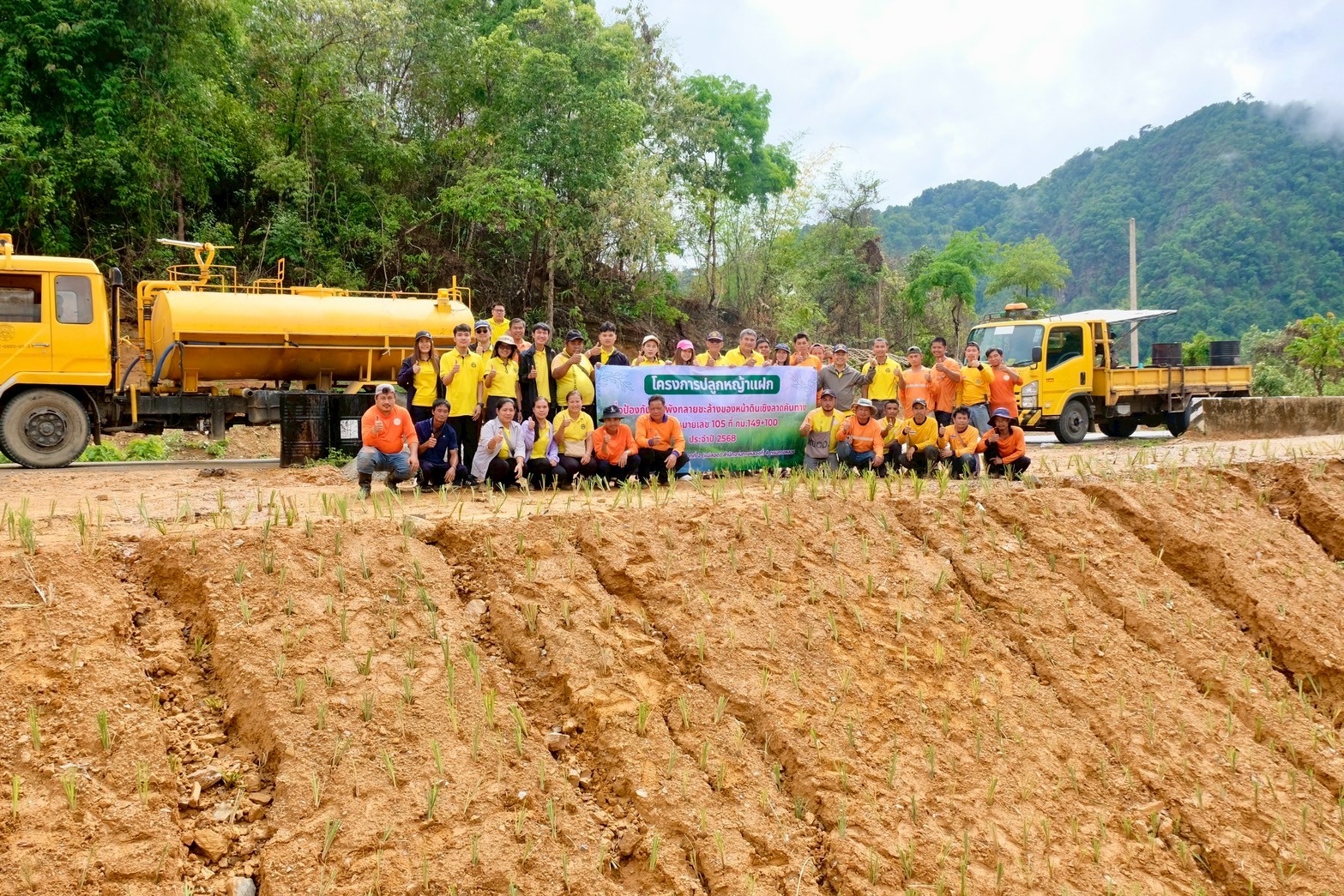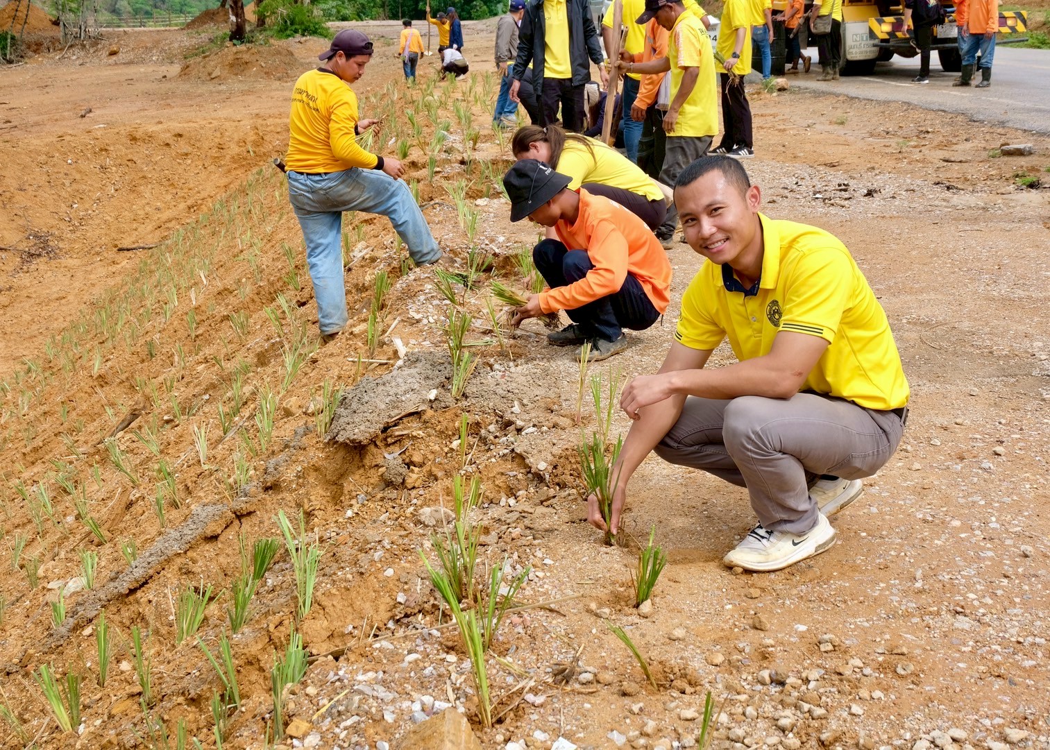 ได้ร่วมจัดโครงการปลูกหญ้าแฝก เพื่อป้องกันการพังทลายชะล้างของหน้าดินเชิงลาดคันทาง